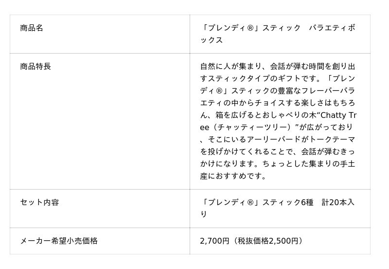 1.おしゃべりの木が会話をサポート!「ブレンディ(R)」スティック バラエティボックス