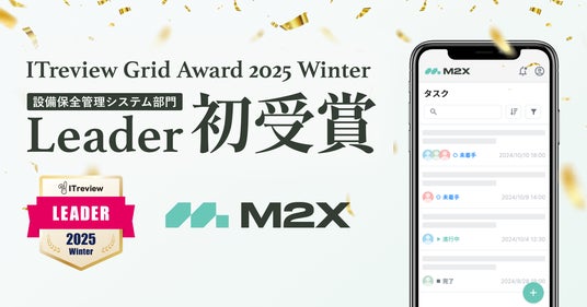 株式会社M2X(本社:東京都中央区、代表取締役社長:岡部晋太郎)が提供する現場にとけ込む設備保全アプリ「M2X」が、IT製品レビュープラットフォーム「ITreview」で発表された「ITreview Grid Award 2025 Winter」の設備管理システム部門において、最高位である「Leader」を受賞したことをお知らせします。顧客満足度と認知度の双方が優れた製品として評価されたことがこの度の受賞に繋がりました。