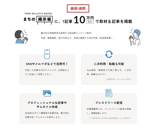 - 記事の二次利用が可能:作成した記事は自治体のSNSやメルマガ、広報誌などで自由に活用可能