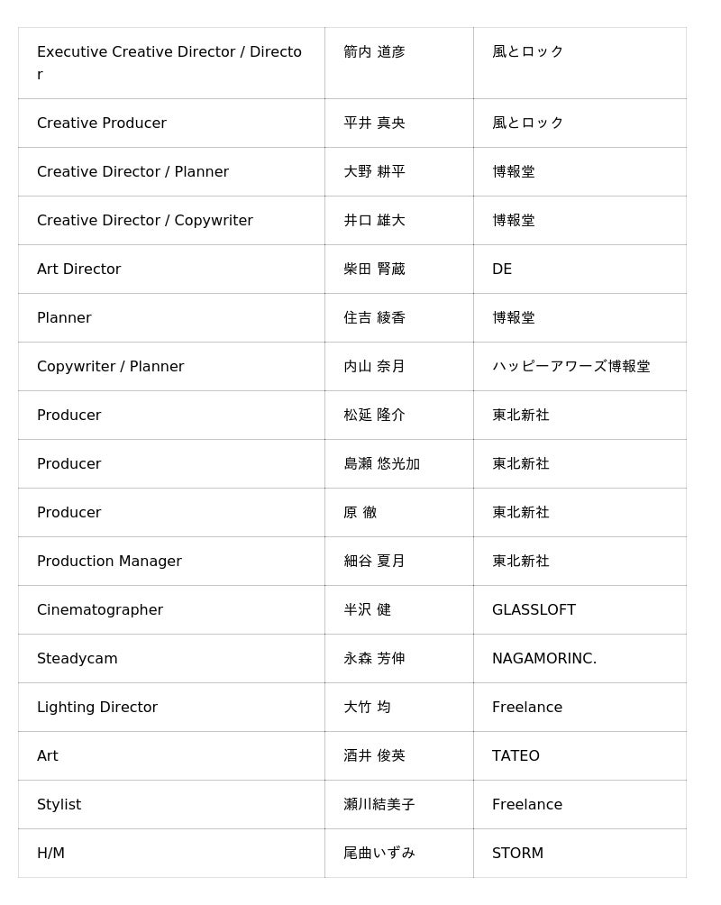 制作スタッフ:風とロック/株式会社博報堂/東北新社