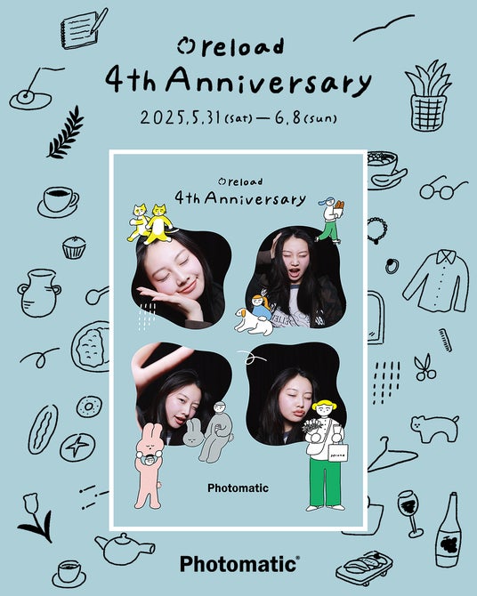 さらに、5月31日(土)~6月8日(日)の9日間は、「reload」の開業4周年を記念したスペシャルイベント「reload 4th Anniversary」が開催されます。イベント期間中、Photomaticのセルフフォトブースでは、イラストレーター『いそのけい』による描き下ろしのオリジナルフレームで撮影をお楽しみいただけます。最新トレンドが集まる下北沢で楽しい時間を過ごしたあとは、Photomaticのフォトブースでかけがえのない瞬間を撮影してみてください。