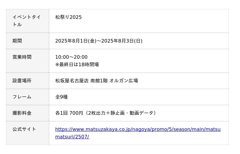 松坂屋名古屋店の「松祭り2025」にセルフフォトブースPhotomaticが登場<8月1日(金)~8月3日(日) >