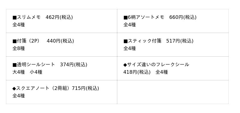 スリムメモ/サイズ違いのフレークシール/スティック付箋/6柄アソートメモ