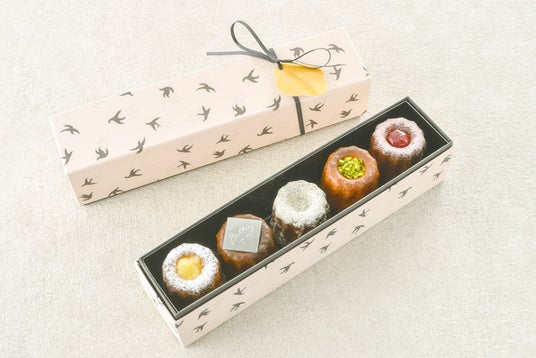 このたび4月2日(水)より、春限定『カヌレボックス』を販売いたします。茶葉が華やかに香る新作「ジャスミン」の他に、果肉入りのジャムが爽やかな「レモン」や、ラムの香りが引き立つ「プレーン」。さらに、刻んだピスタチオをあしらった「ピスタチオ」、甘酸っぱい「フランボワーズ」が楽しめます。フランス産発酵バターと北海道バターを使った、5種類のカヌレを詰め合わせた『カヌレボックス』は、自分へのご褒美や手土産にもおすすめです。なお、店頭購入の場合は、電話予約が必須となります。
