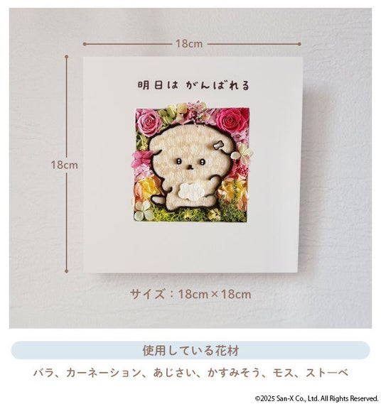 眺めるだけでおもわず癒されそうな「いしよわちゃん」のフラワーフレーム。ご自分用にも、いつも頑張りすぎてしまうお母さんへの母の日のプレゼントにもおすすめです。