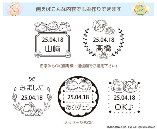 しろくま、ぺんぎん?、とんかつ、ねこ、とかげなどのすみっコはもちろん、たぴおか、ざっそう、ほこりなどのみにっコが日付をお知らせ。押すたびにほっこり癒してくれる日付印です