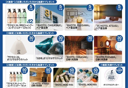※「3S HOTEL HIRATSUKA」の日帰りサウナは男性専用のため、女性は3施設分のスタンプで4施設分の賞品にご応募いただくことが可能です。