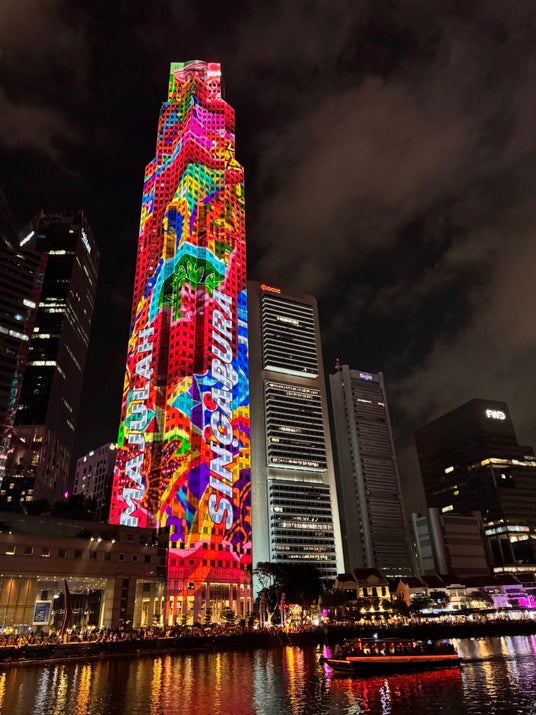 2025年6月28日から8月9日までの日曜を除く期間中、地上66階建て・高さ280mを誇るUOBプラザ1全体を照らすプロジェクションマッピングショーをご覧いただけます。