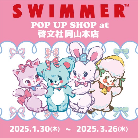 アイピーフォー株式会社(本社:東京都豊島区、代表取締役社長:小濱 剛)がライセンスを取り扱っている大人気雑貨ブランド「SWIMMER」は、啓文社岡山本店にてPOP UP SHOPを開催します!
