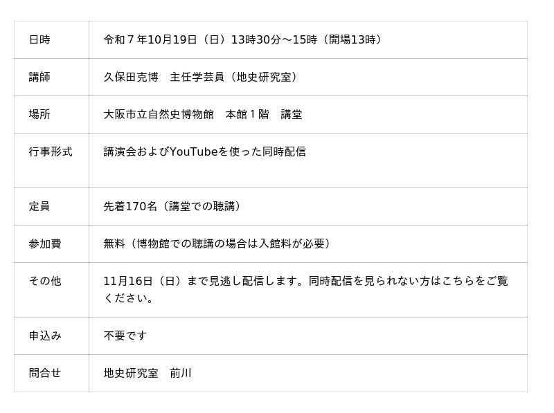 大阪市立自然史博物館 総務課 広報担当TEL:06-6697-6222 FAX:06-6697-6225