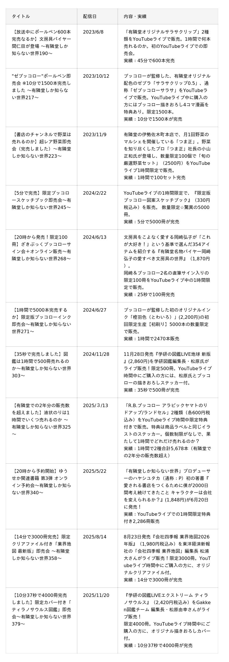 有隣堂公式YouTubeチャンネル「有隣堂しか知らない世界」では、ライブ配信と連動した即売会を多数実施し、高い購買転換力を実証してきました。
