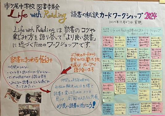 - タイトル:図書委員会の活動~「Life with Reading 読書の秘訣カード」ワークショップ開催(横浜市立市ケ尾中学校)