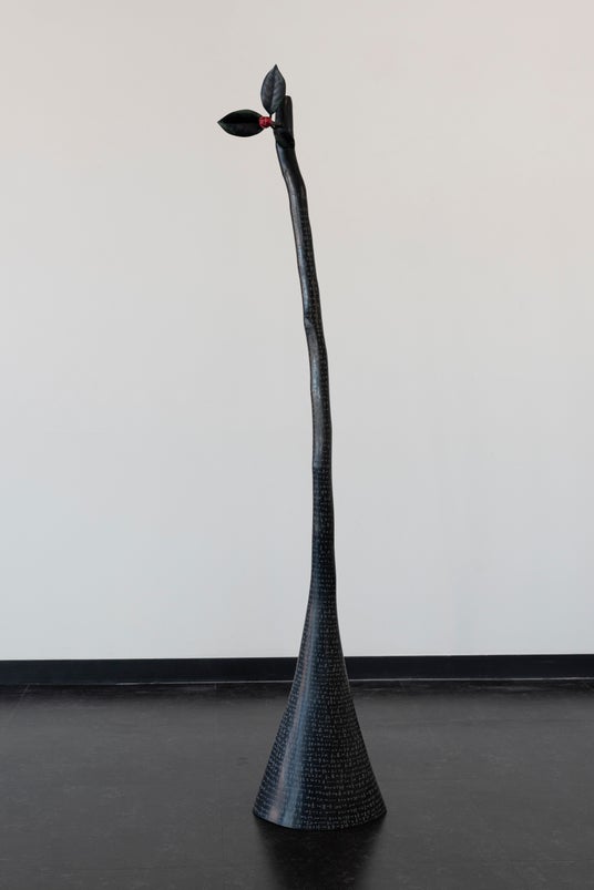 4. 福岡道雄 《私達は本当に怯えなくてもいいのでしょうか(椿)》 2000, 木、FRP, H120 x W30 x D30 cm, Courtesy of FINCH ARTS