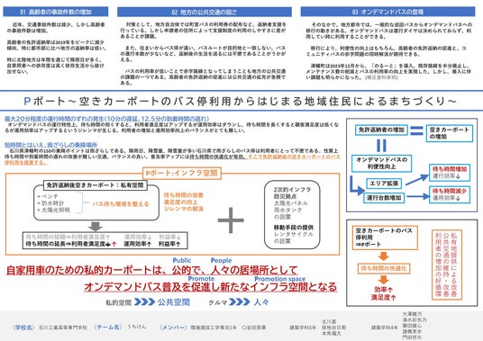 提案名 Pポート~空きカーポートのバス停利用からはじまる地域住民によるまちづくり~