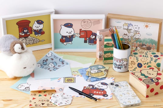 ▲描き下ろしの「ねこぺんゆうびんやさん」のほか、ねこぺん村の仲間たちのイラストや、サンドベージュの用紙を使った味わいのあるデザインも。