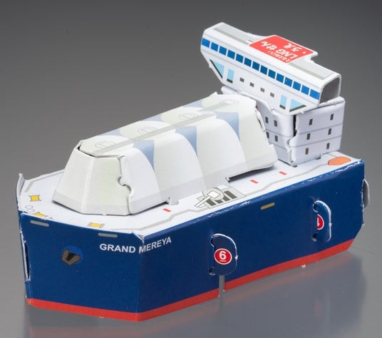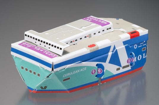 雑誌『幼稚園』は、これまでも「NTT東日本コラボ 公衆電話」や「東芝テックコラボ セルフレジ」など、「紙付録なのに、まるで本物だ!」とリアルにこだわった付録が話題になってきましたが、もちろん今回の商船三井とのコラボ付録もホンモノ志向。小さな5隻の船の成形はもちろんですが、印刷の色そのものにもこだわり、たとえば、船底の赤色は、商船三井の監修のもと実際に塗装されている銅色を含んだ赤色(フジツボなどの水生生物の付着を防ぐ防汚塗料)を再現するなど、細部にとことんこだわりました。