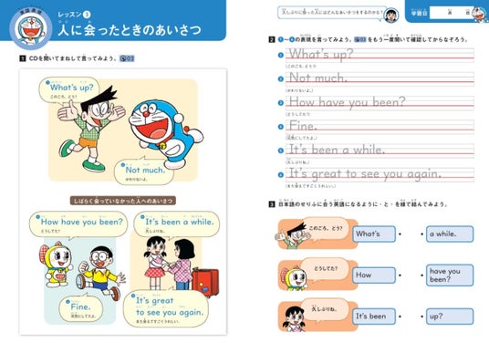 ▲『ドラえもんはじめての英語ドリル 基本の英語表現』より
