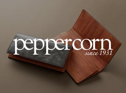 「主力となるのはどれも手間のかかるハンドメイドの革小物ですが、例えば、プライベートブランド『peppercorn(ペッペルコルム)』は、イタリア語で“黒胡椒”を意味するように、中世ヨーロッパ時代、希少性が高く珍重された胡椒の高級なイメージ、さらに胡椒のスパイシーな味のごとくエッジの利いた個性豊かな印象を革小物に写したブランドです。また、日本の丁寧かつ、熟練の技を駆使した『Tsurane(ツラネ)』は、歌舞伎の台詞の一種で長々と朗唱する雄弁術「連ね」に想を得て名付けたブランドです。このネーミングには作り手から使い手へと繋ぐ本物の技と精神を重ね、連なるように長く愛用していただきたいとの思いも託しています」