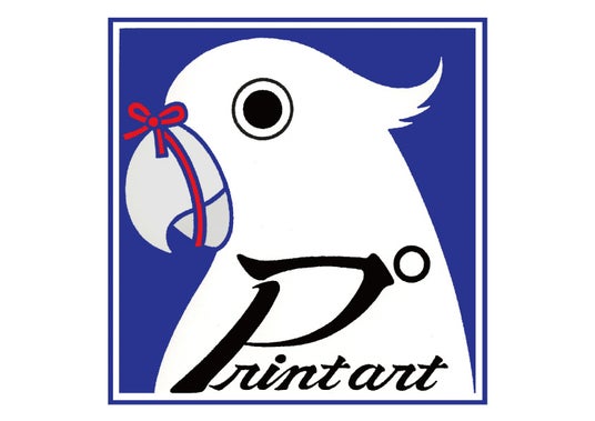 <プリントアートのロゴマークは「くちばしを縛ったオウム」をモチーフにしています。オウムはヒトマネを得意とする鳥。そのくちばしを縛るということは、すなわち「ヒトマネをしない」という私の信念を表現しています。>