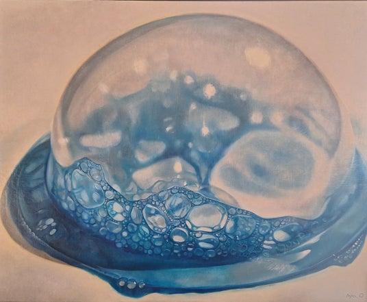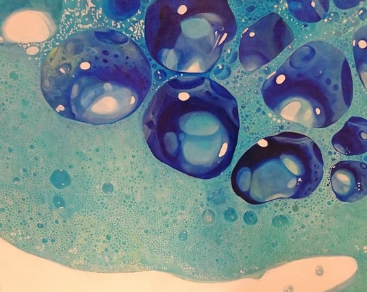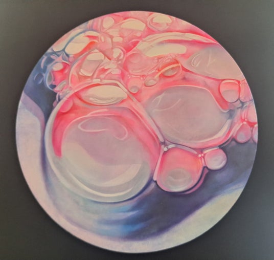 近年、モチーフの泡の構造が面白く感じ、接写カメラで撮影した物をモチーフにすることが多くなりました。