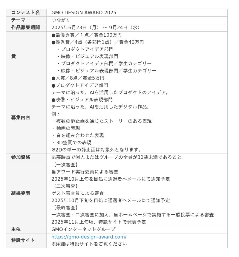 GMOインターネットグループ、好評を博した昨年に続き「GMO DESIGN AWARD 2025」を開催