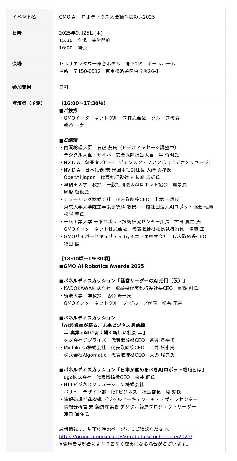 【「GMO AI・ロボティクス大会議&表彰式 2025」とは】 (https://group.gmo/security/ai-robotics/conference/2025/)