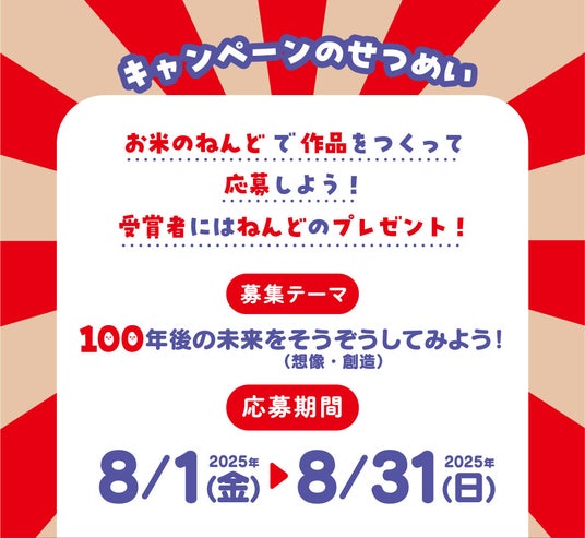 受賞者は過去最多の100名様。届いてすぐに楽しめる「お米のねんど」「ねんどおどうぐ」など、100周年にふさわしい豪華賞品をご用意しております。