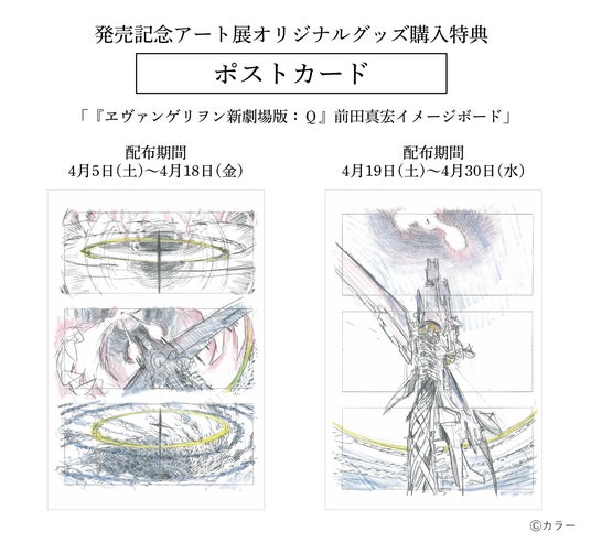 ◆オリジナルグッズを税込3,300円以上お買い上げで、グッズ購入特典ポストカード「『ヱヴァンゲリヲン新劇場版:Q』前田真宏イメージボード」を1会計につき1枚プレゼント。