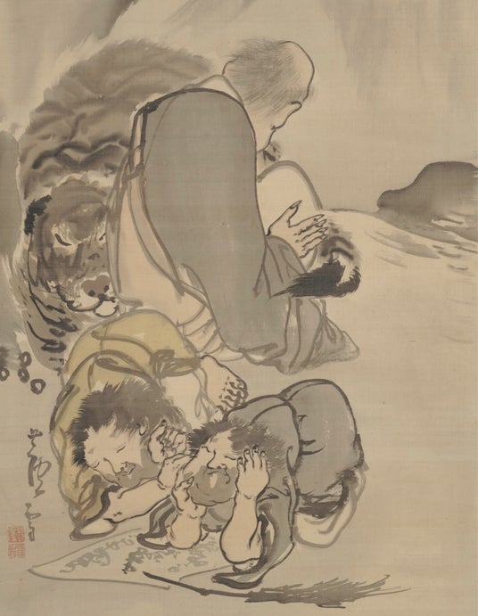 江戸時代中期の画家。丹波国篠山藩士の子に生まれ、京都で円山応挙の門人となった。師・応挙にはない大胆な筆の運びと楽しさにあふれた作品を描いて新境地を開いた。奇抜な構図と奔放な筆致から「奇想の画家」の一人とされているが、子供や子犬をはじめとする、「ゆるさ」や「かわいらしさ」、「柔らかさ」に満ちた作品群も、この画家の一つの到達点である。