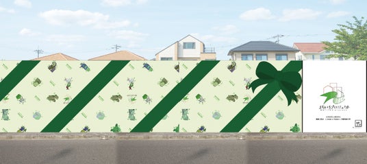 仮囲いをラッピングに、これから建築される建物をプレゼントに見立てた、ストーリーを感じるデザイン。