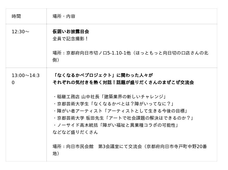 日時:9月24日(水)12:30~14:30仮囲い設置場所:京都府向日市切ノ口5-1.10-1他(ほっともっと向日切の口店さんの北側)