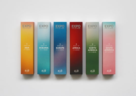 香り博のために、300年以上の香りの老舗3社がコラボした「EXPO INCENSE(エキスポインセンス)」。 6大陸の香りを創香しました。各1650円(税込)