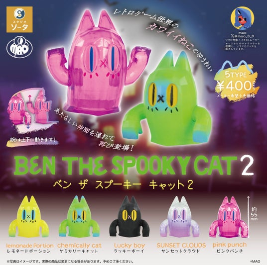 MAO×スタジオソータ「BEN THE SPOOKY CAT2」(カプセルトイ 400円(税込)、ボックストイ 550円(税込))を、販売いたします。