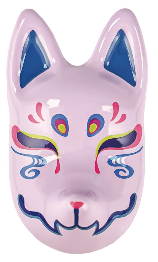 香木や蝶をモチーフにした美しい配色の狐面たち全6種。