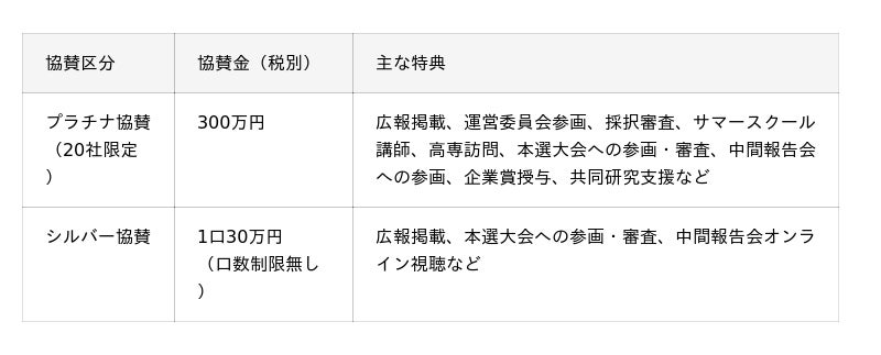 WiCON2026では、WiCONの趣旨に賛同し、若手育成・地域創生を支援いただける企業を募集します。プラチナ協賛は20社限定で、運営委員会への参画や高専との交流、IoTサマースクール参画など、教育・採用・共創の機会が提供されます。