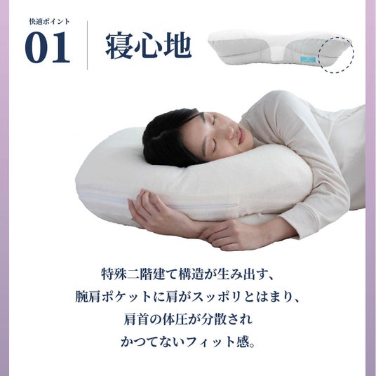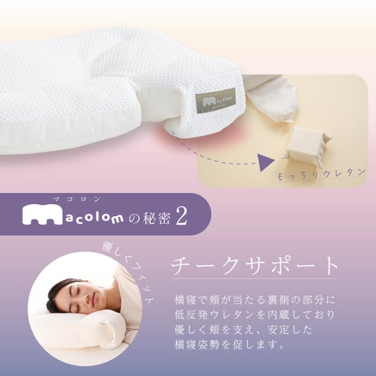 チークサポートは横寝の時、頬を優しく支え、快適に眠れます。