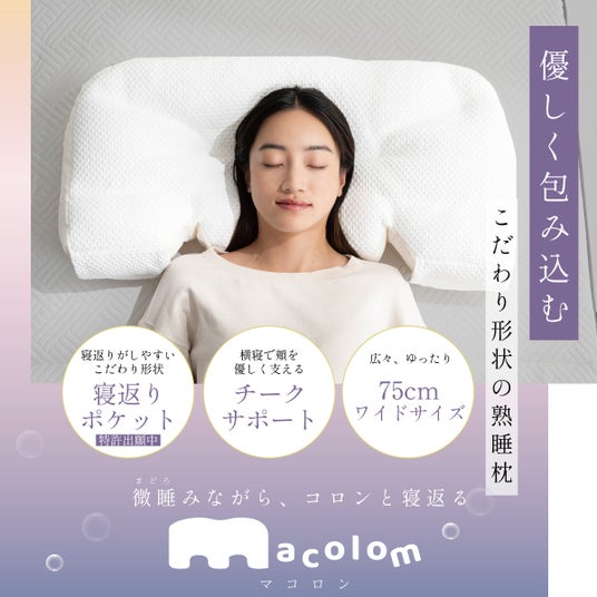 ”コロン”と寝返りしやすい枕「まどろみながら、コロンと寝返る」をコンセプトに、寝返りしやすい構造で、正しい姿勢で快適に寝返りをサポートします。