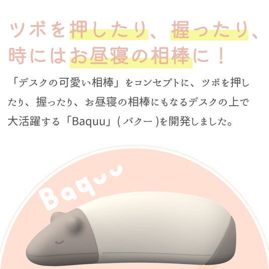 デスクの上の可愛い相棒バクの形をしたBaquu(バクー)は、握ったり、