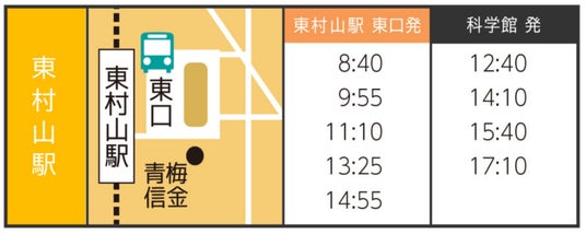 3月9日(日) 東村山駅 東口 ⇔ 多摩六都科学館 シャトルバス時刻表