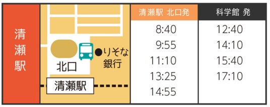 3月2日(日) 清瀬駅 北口 ⇔ 多摩六都科学館 シャトルバス時刻表