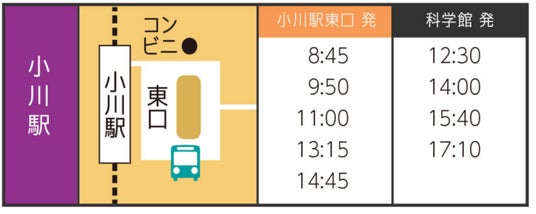 3月2日(日) 小川駅 東口 ⇔ 多摩六都科学館 シャトルバス時刻表