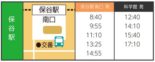 2月16日(日) 保谷駅 南口 ⇔ 多摩六都科学館 シャトルバス時刻表