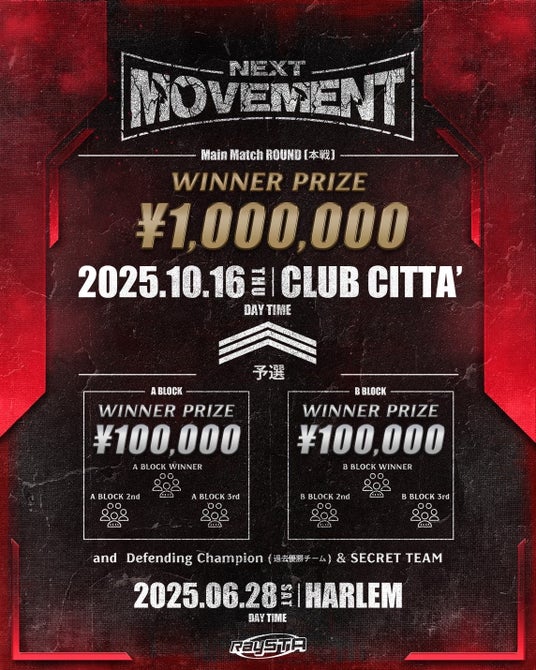 NEXT MOVEMENT大会概要:賞金総額100万円の頂点決定戦