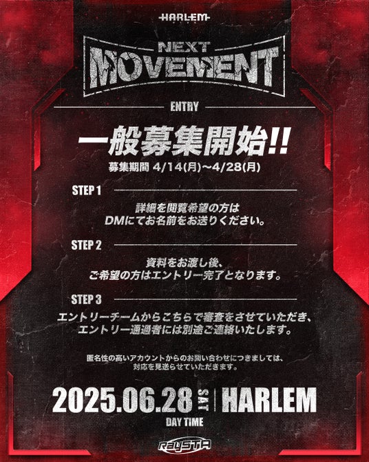 エントリー方法詳細:HARLEM開催・4月14日より募集開始