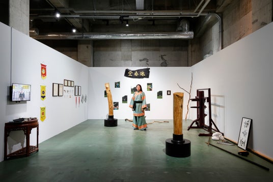 武術は一般的に男性性と結びつきやすい。しかし、小林は、女性によって創始されたと言われる詠春拳を身体的に学んで参照し、クィアの視点から、武術を男性性から解放し、身体的なコミュニケーションの術として再解釈を試みている。イギリスの大学で学んだが、アジア各地をフィールドとしており、欧米一辺倒でもなく、日本国内に留まるのでもなく、地域や文化圏を横断しながら制作する。さらにアートとパフォーマンスの境界も乗り越える。異文化に学ぶ真摯な姿勢も印象的で、リサーチ型で脱中心的な新たなアートの出現を期待させる。(鷲田めるろ/金沢21世紀美術館 館長、東京藝術大学 准教授)