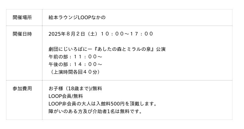 参加申込方法:絵本ラウンジLOOPなかのHPより