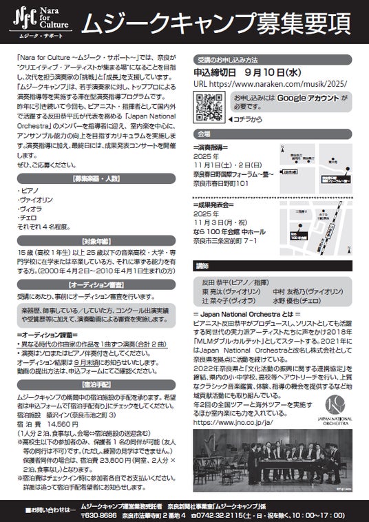 Nara for Culture~ムジーク・サポート~MUSIK CAMP 受講者募集
