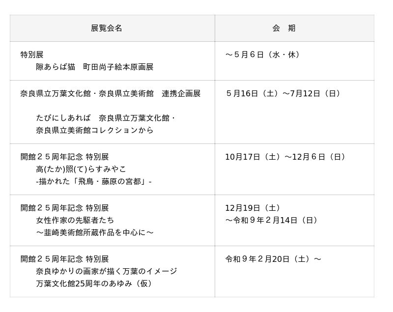万葉文化館「令和8年度展覧会・行事のご案内」