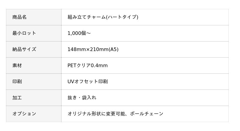 組み立てチャーム(ハートタイプ)のサンプル請求は無料