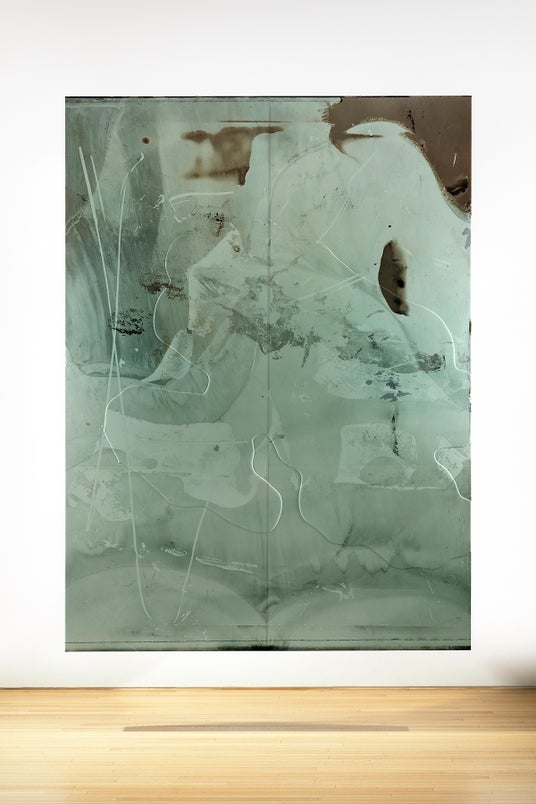 〈網膜〉シリーズは、1988年に制作の拠点を移した宇和島のアトリエで着想され、1990年代初頭まで集中的に制作されたあとも、他のシリーズへの展開を伴いながら制作が続けられてきました。網膜とはそもそも眼球の最奥にある、光を感受し視神経を介して脳に情報として伝える機能を担う薄い透明の膜ですが、大竹は、廃棄された露光テスト用のポラロイド・フィルムに残された光の痕跡を大きく引き伸ばし、その表面に透明の絵具としてウレタン樹脂を塗布する絵画作品のシリーズに、この名をつけました。分離している「写真像の色面」と「透明の塗膜層」の2つが私たちの網膜を介して脳内で統合され、「時間」と「記憶」を内包した新たな像として立ち現れます。新作の〈網膜〉ではさらなる更新が試みられる一方で、長期間放置され変質した感光剤がそこに蓄積する時間を像として刻印し、透明の塗膜層はその像を幾重にも覆います。未だ見ぬ記憶として、〈網膜〉の発する情景は私たちを揺さぶり続けるのです。